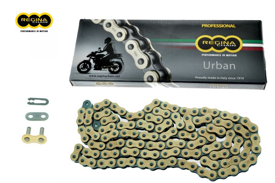 Chaîne de transmission secondaire 130 maillons pour MZ des types ES175, ES250, ES300, ES250/1, ES250/2 et ETS250 Trophy. Le fabricant est la société Regina - Italie. Livraison avec attache rapide de chaîne. La chaîne doit être légèrement raccourcie en fonction du nombre de dents des pignons et de la position de la roue arrière.