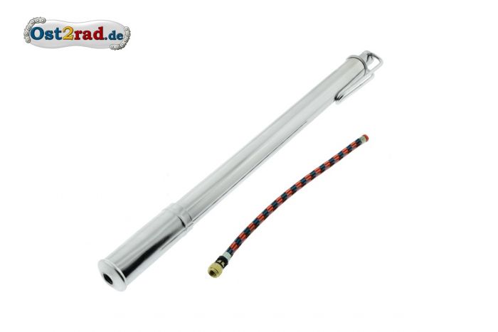 Pompe à air en métal chromé pour SIMSON, MZ et JAWA.Pour valve type auto et moto.Longueur env. 350mm.